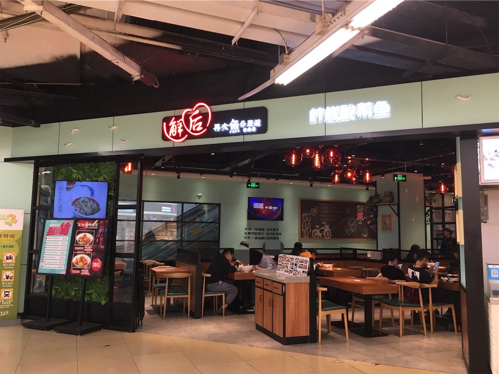 ↑こちら。店名は「再次魚你邂逅」と言います。「魚」の発音yuと、「~と」という意味の「与」の発音yuが同じなのでかけていると見た😎